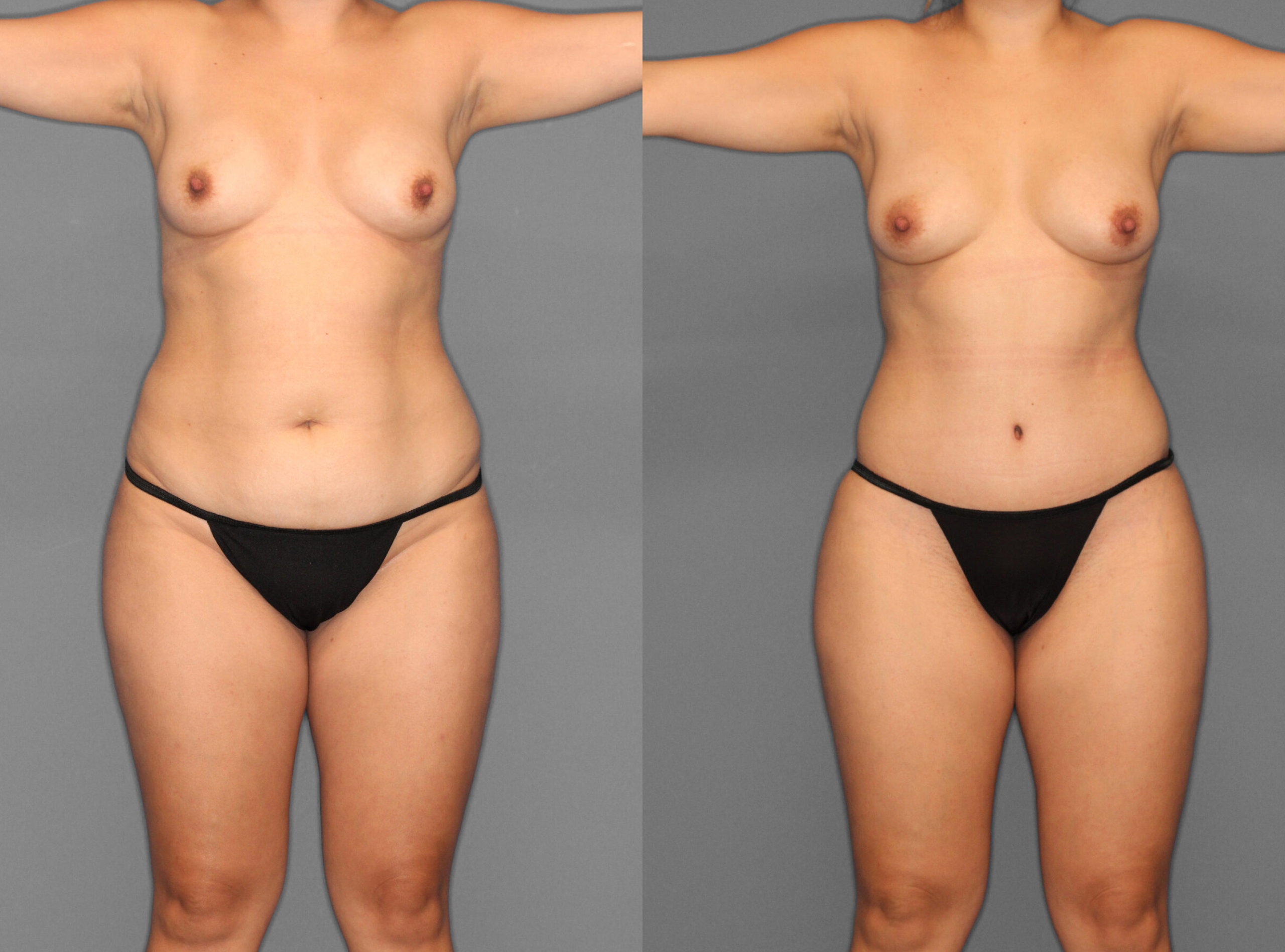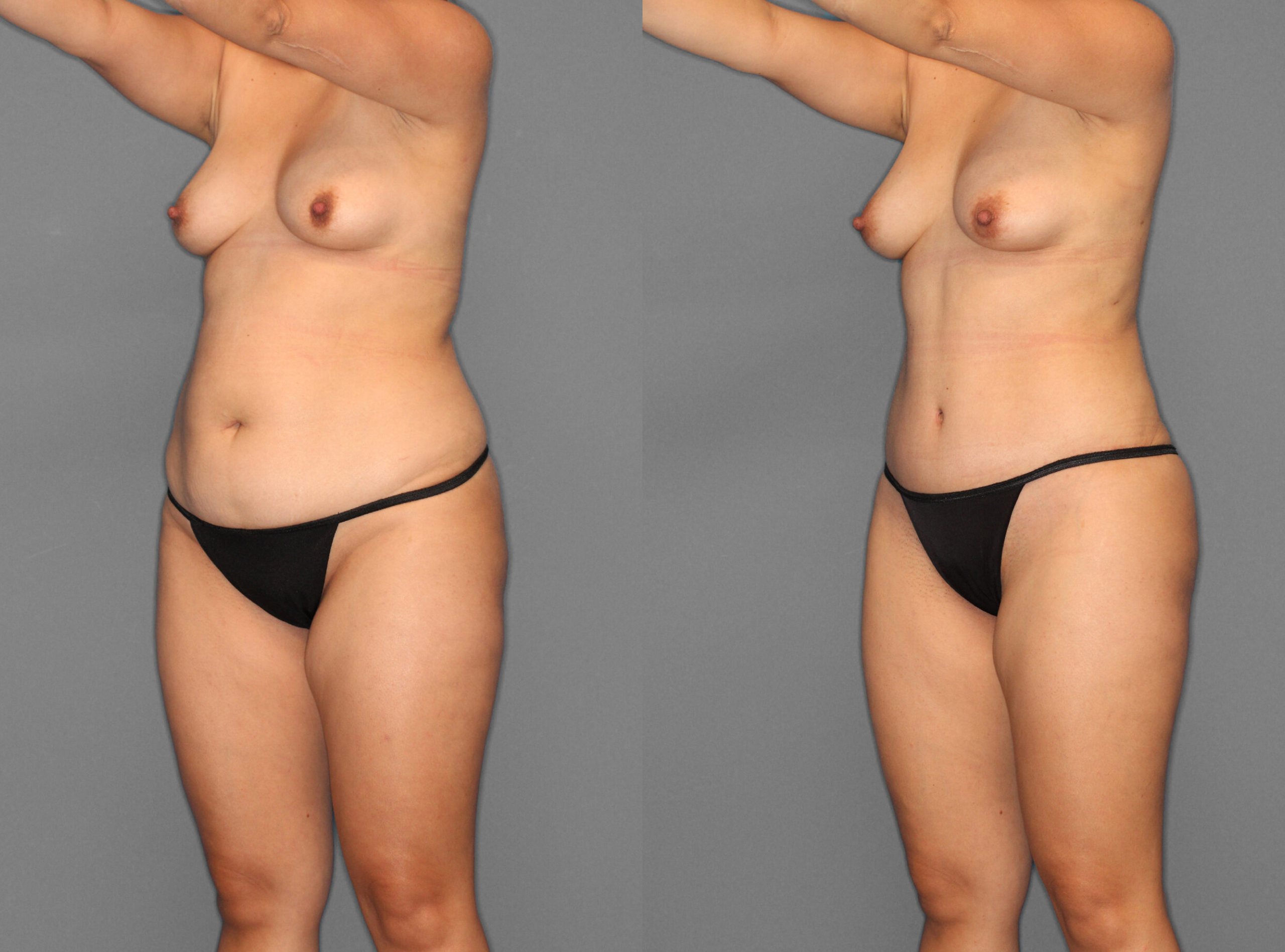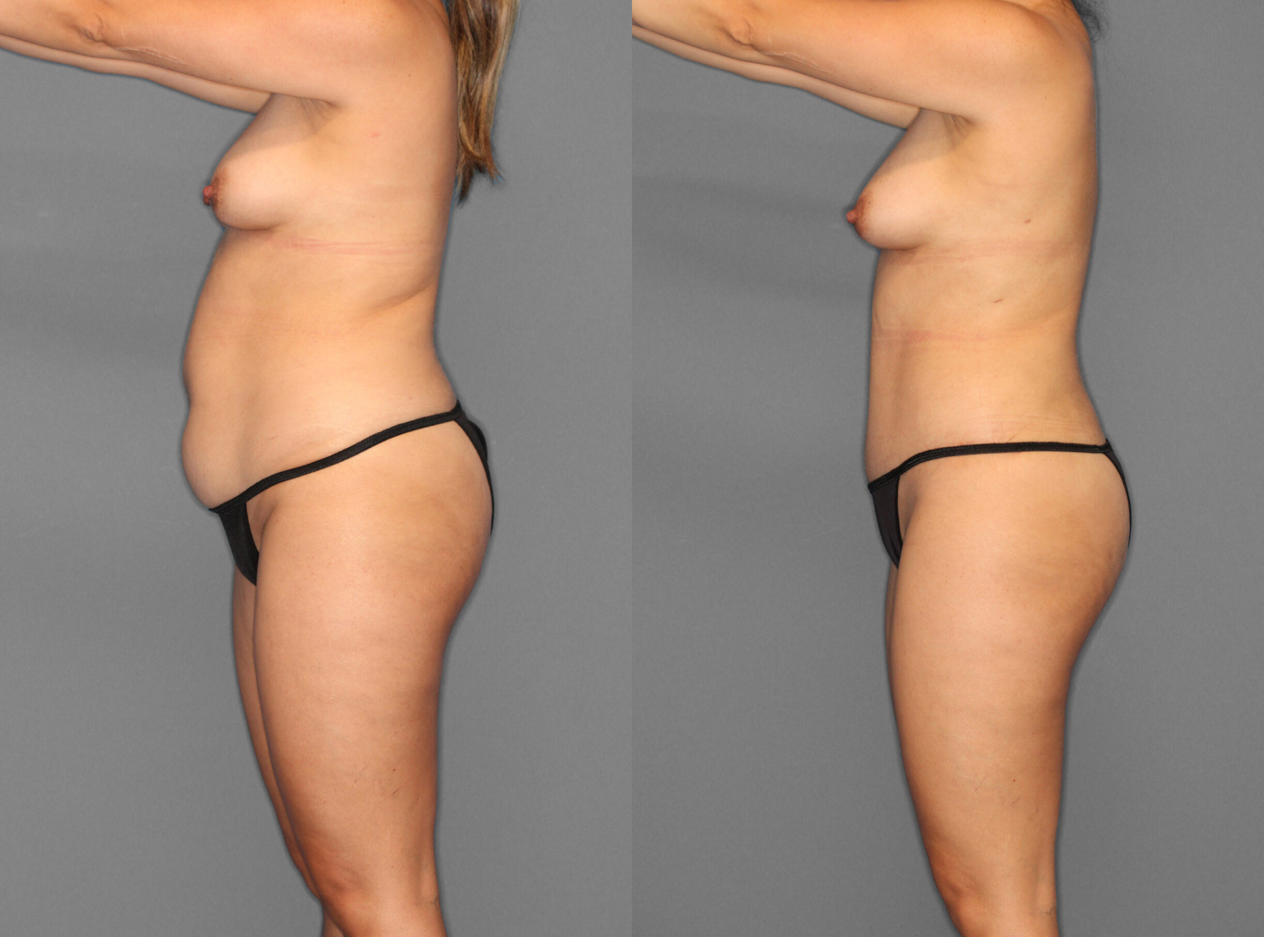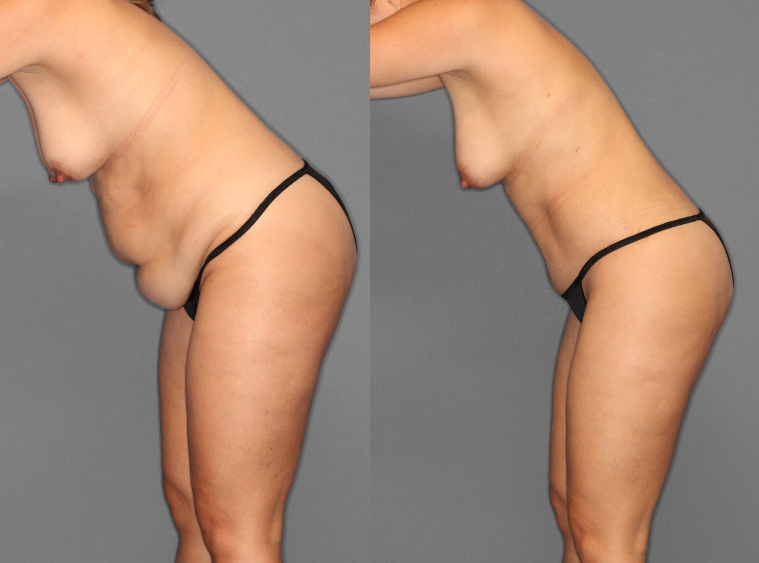 A esta paciente se le realizó Abdominoplastia y Liposucción de flancos, espalda, línea del sujetador. Postoperatorio: 1 mes.