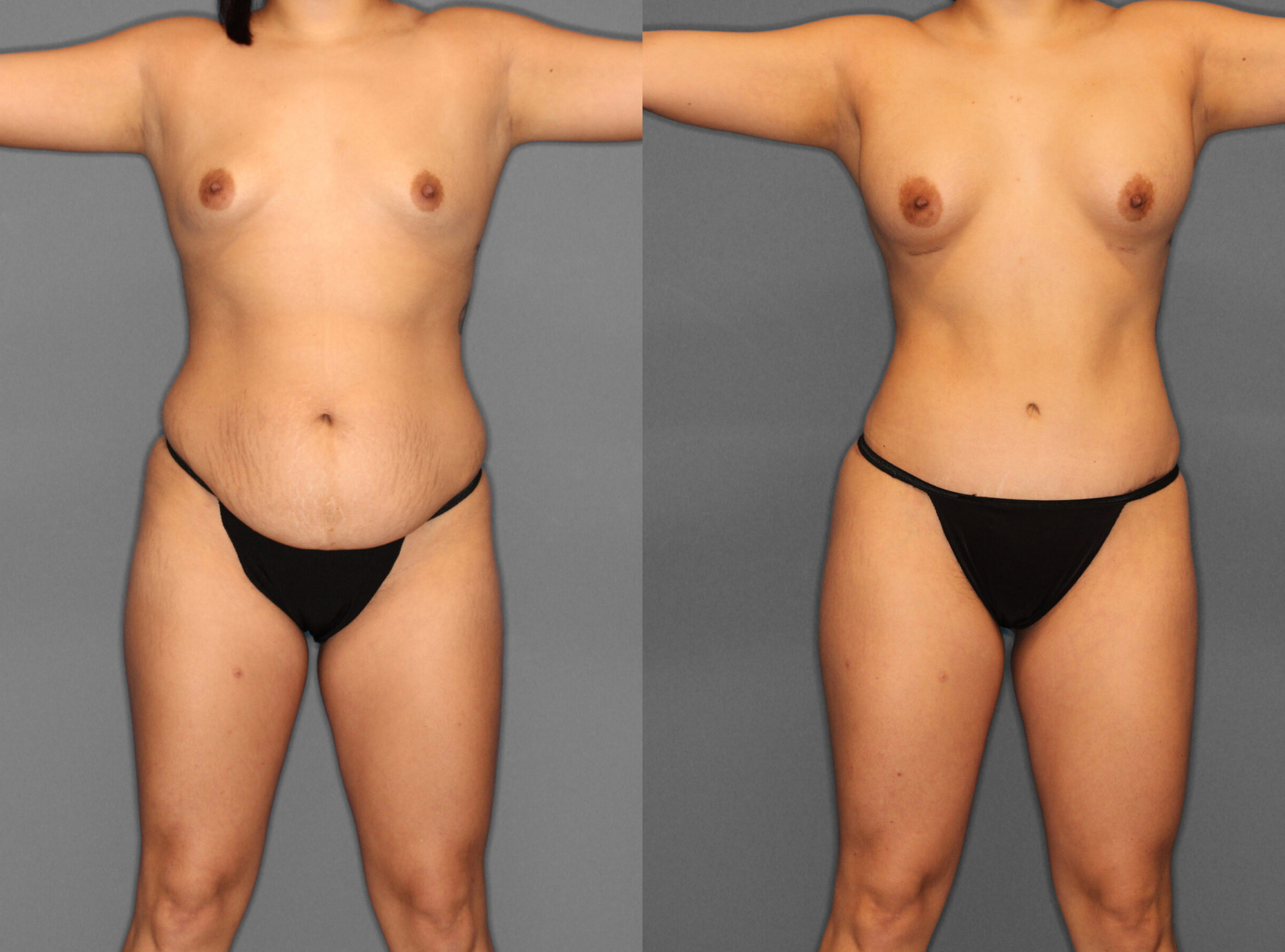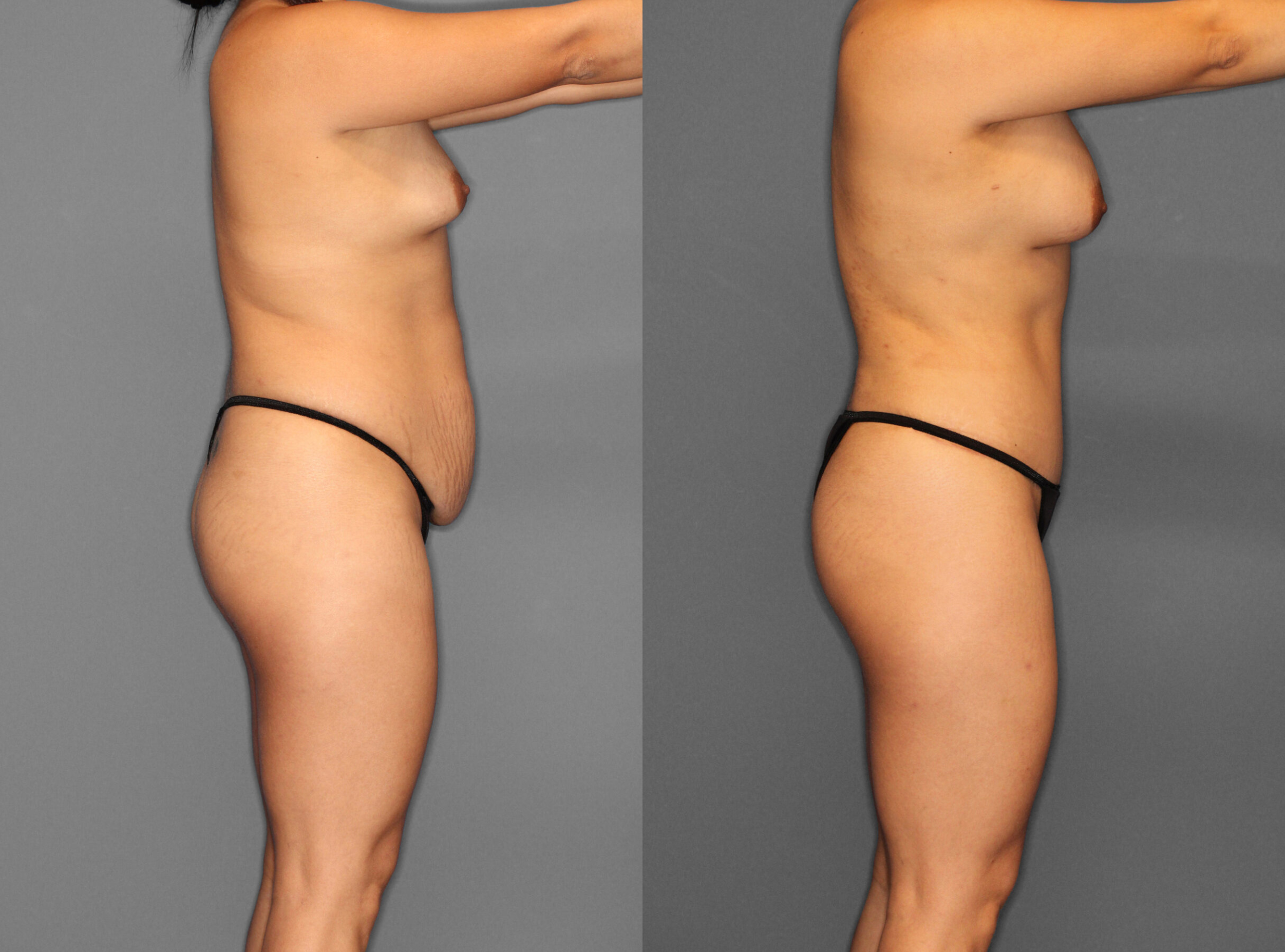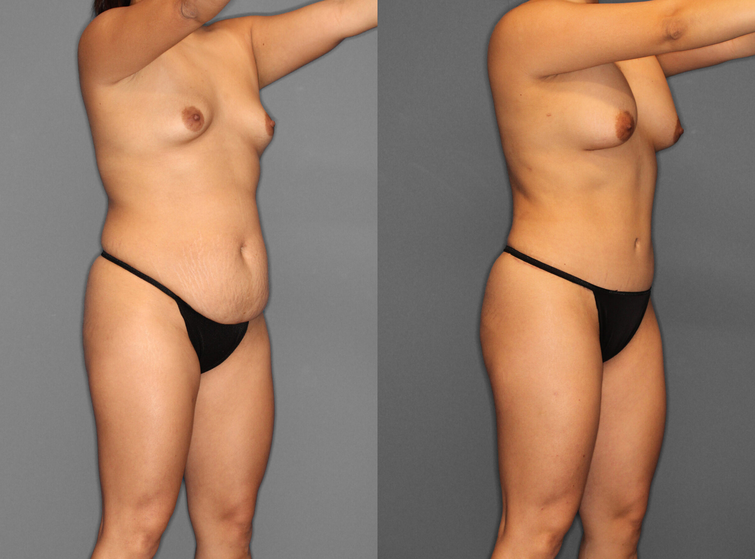 A esta paciente se le realizó Abdominoplastia, Liposucción de flancos, espalda, línea del bra, axilas y Aumento de Senos.
