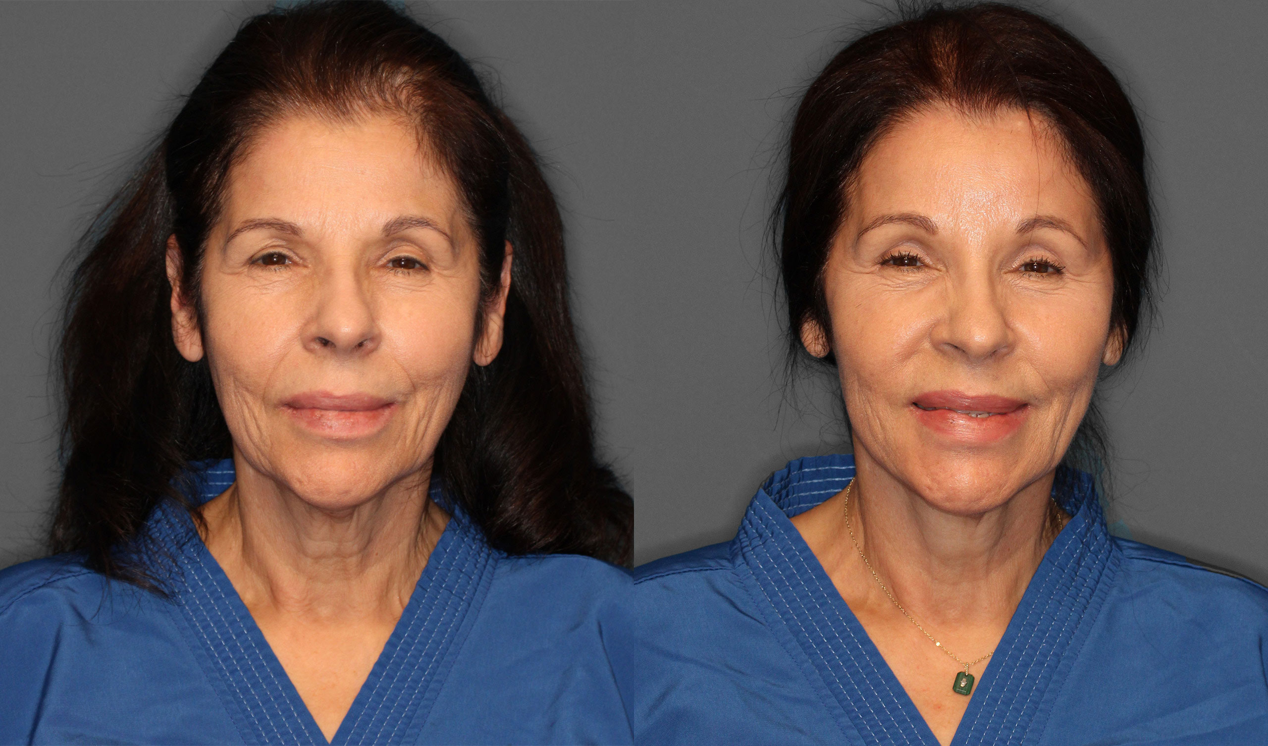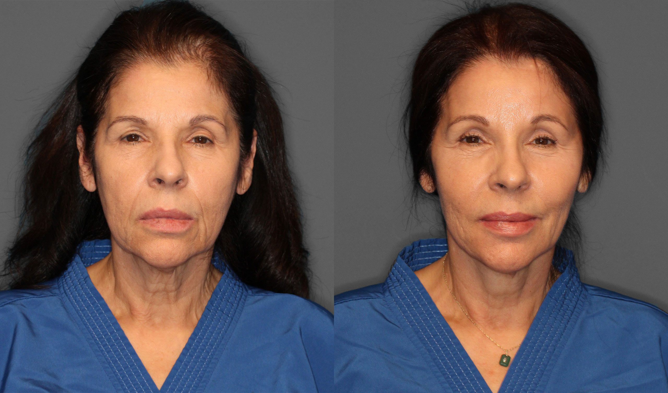 This patient had Upper Eyelid Lift, Facelift, Neck Lift, Endoscopic Brow Lift & Facial Fat Grafting performed.