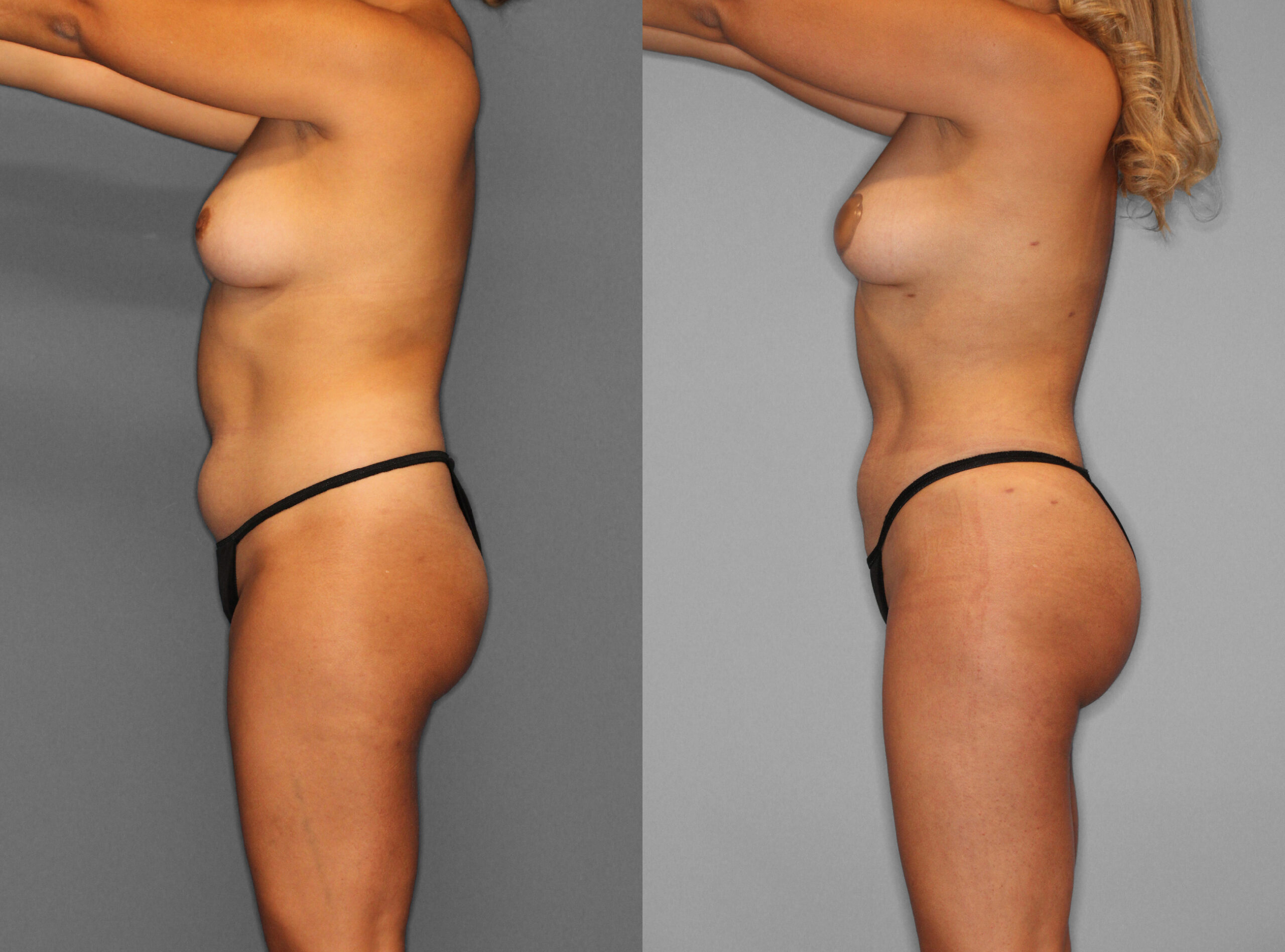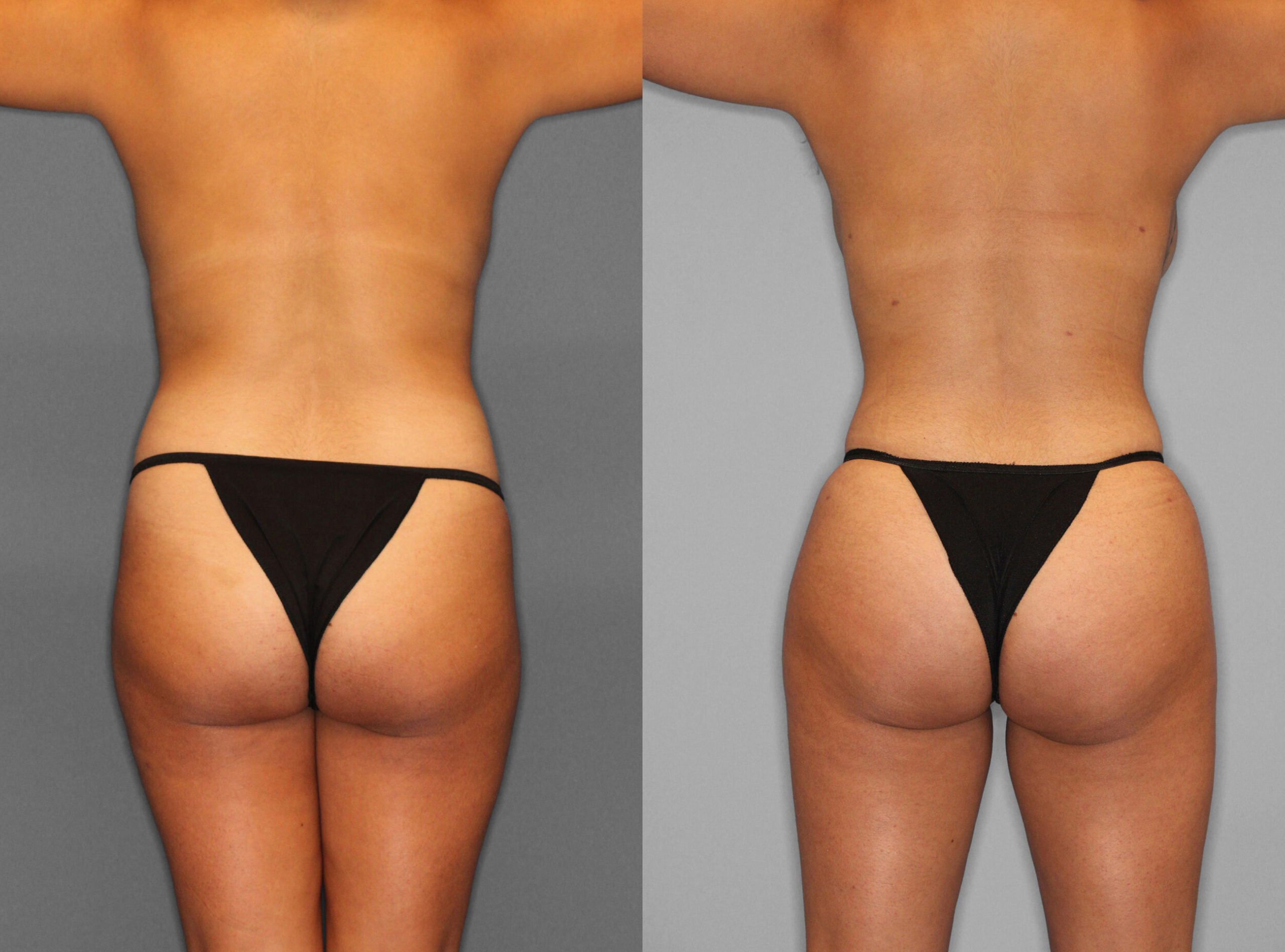 This patient had Liposuction (Flanks, Back, Bra line) & Fat Grafting (Buttocks, Hips) performed.