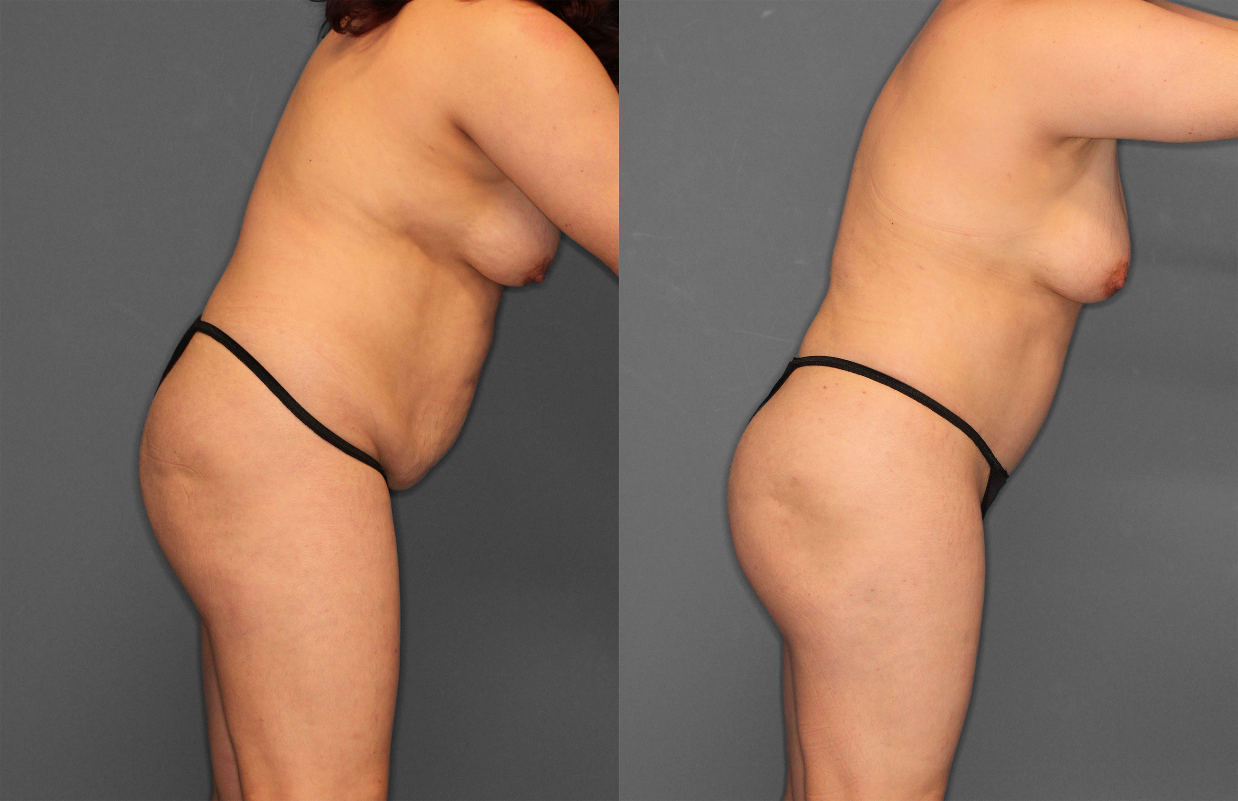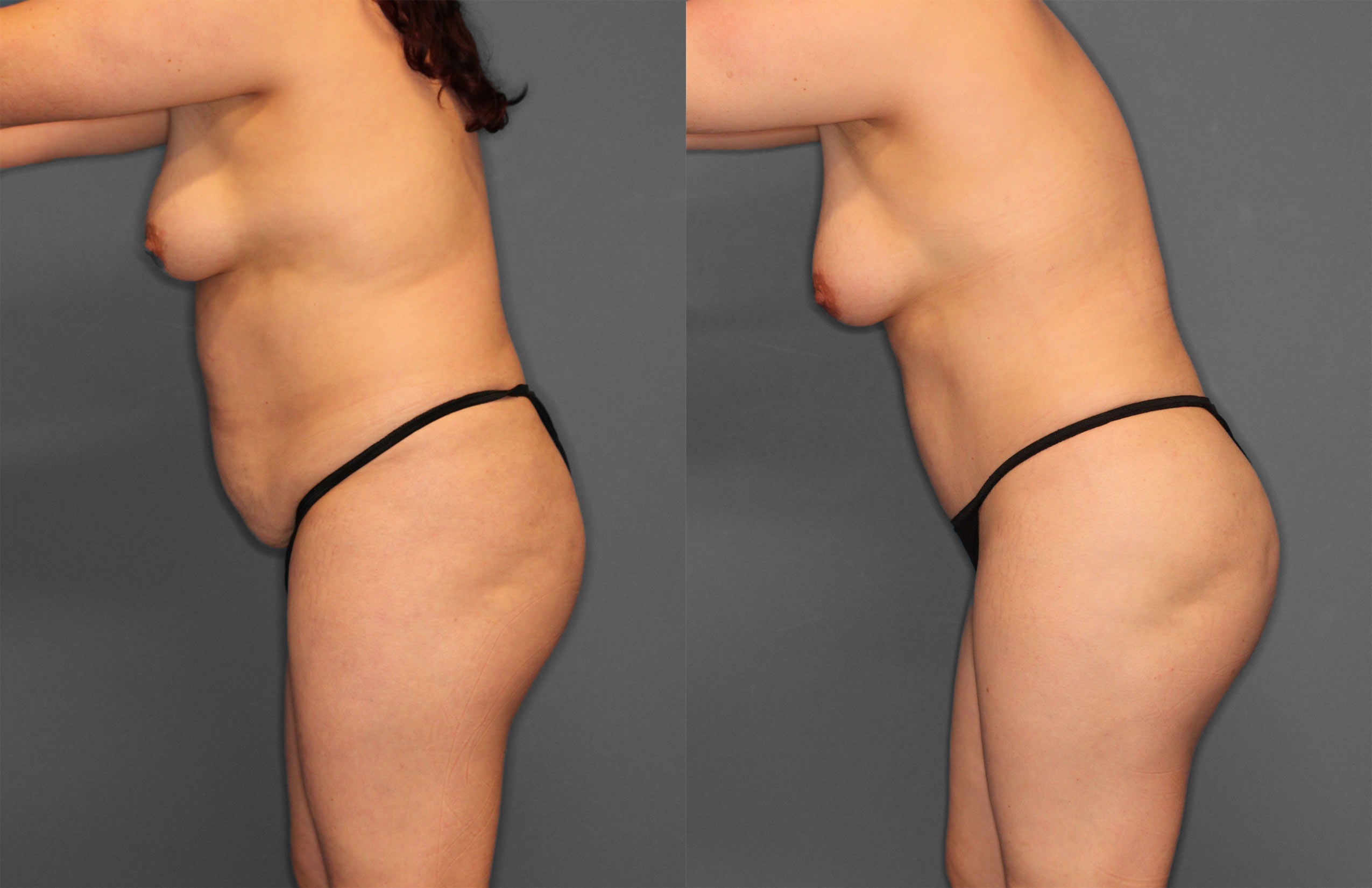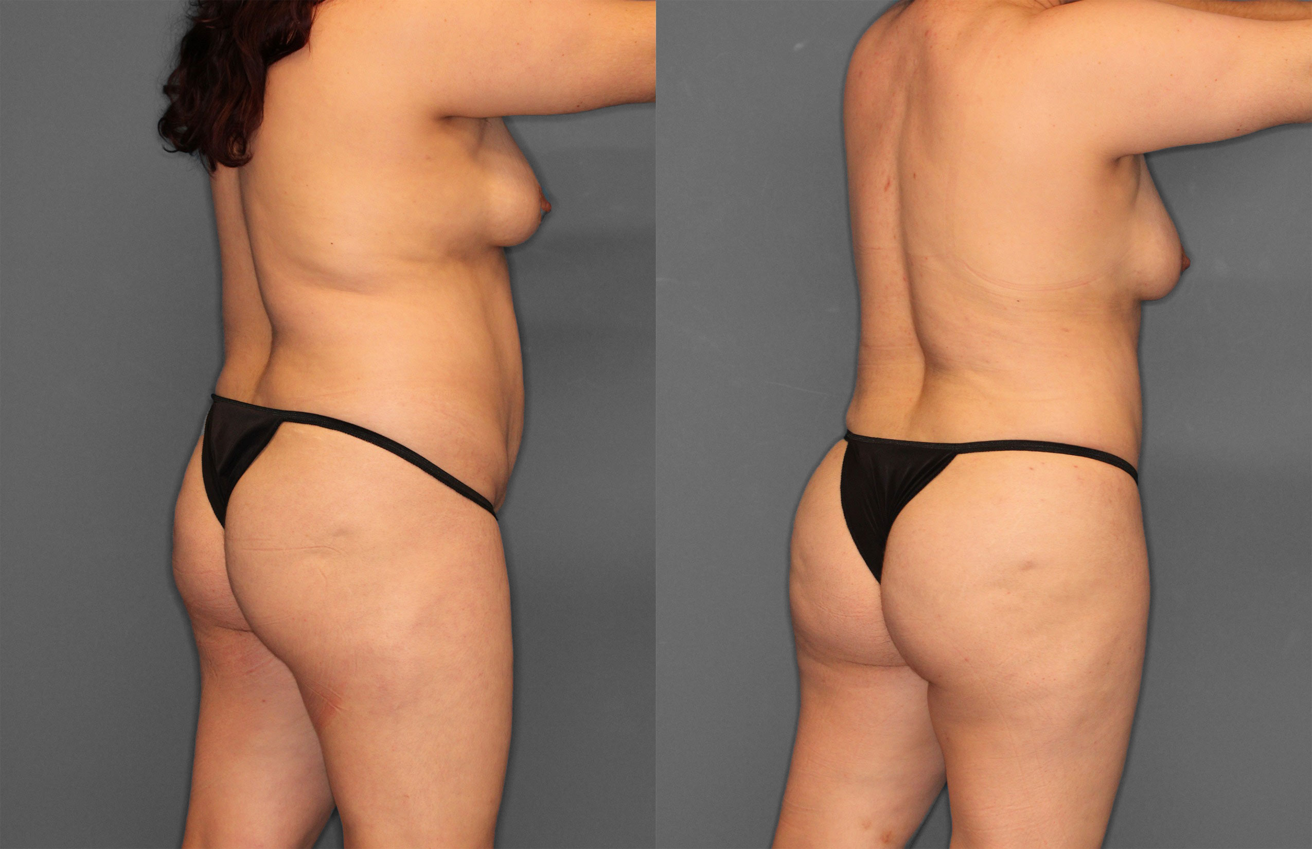 This patient had Tummy Tuck, Liposuction (Flanks, Back, Bra line, Axilla) & Fat Grafting (Buttocks, Hips) performed.