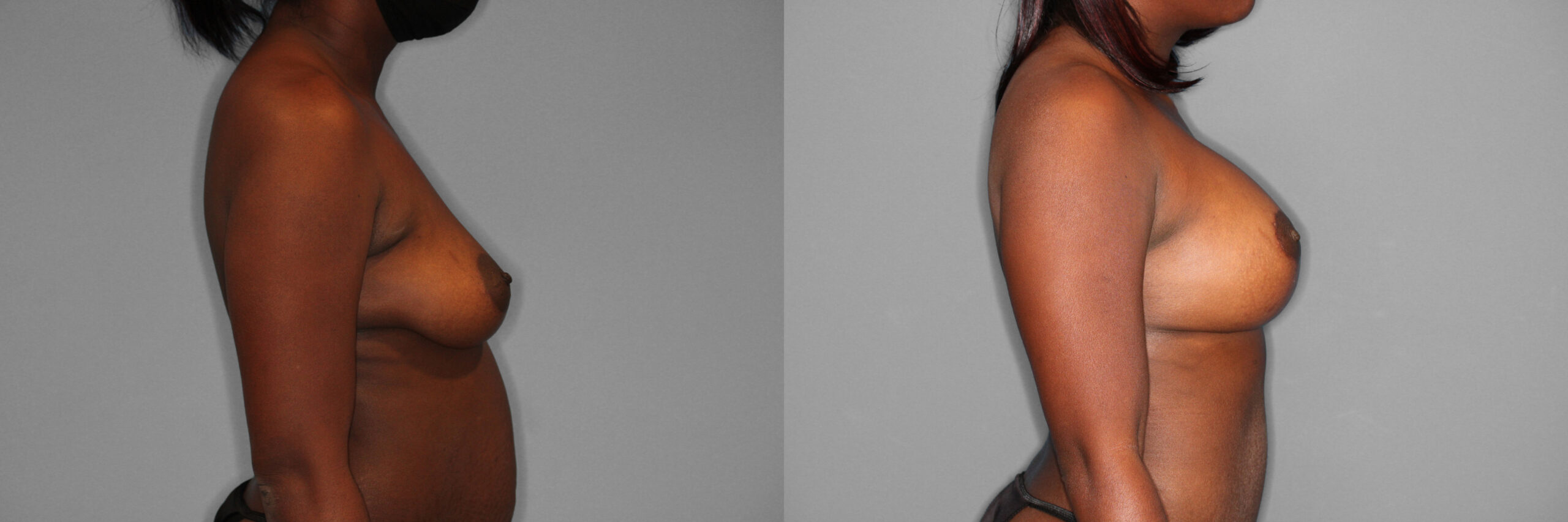A esta paciente se le realizó Abdominoplastia, Liposucción de flancos, espalda, línea del sujetador, axilas, Injerto de grasa en glúteos, caderas y Aumento/Levantamiento de Senos.