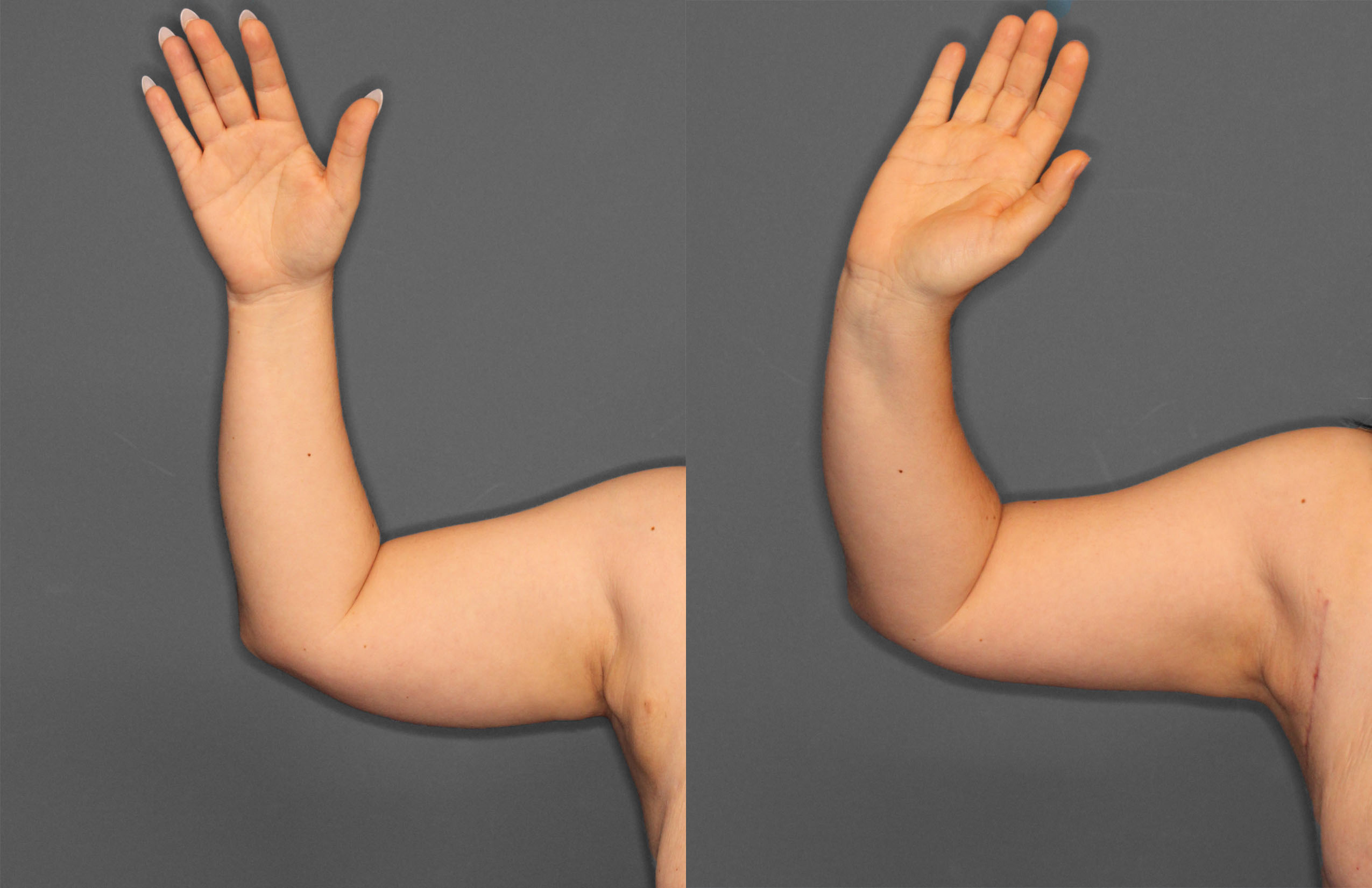 This patient had Breast Lift, Liposuction of Arms & Skin Excision Bilateral Axilla performed.