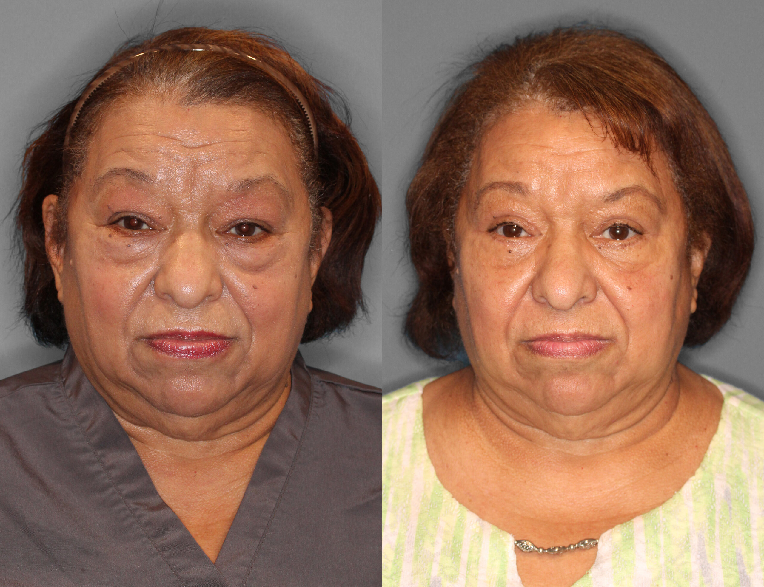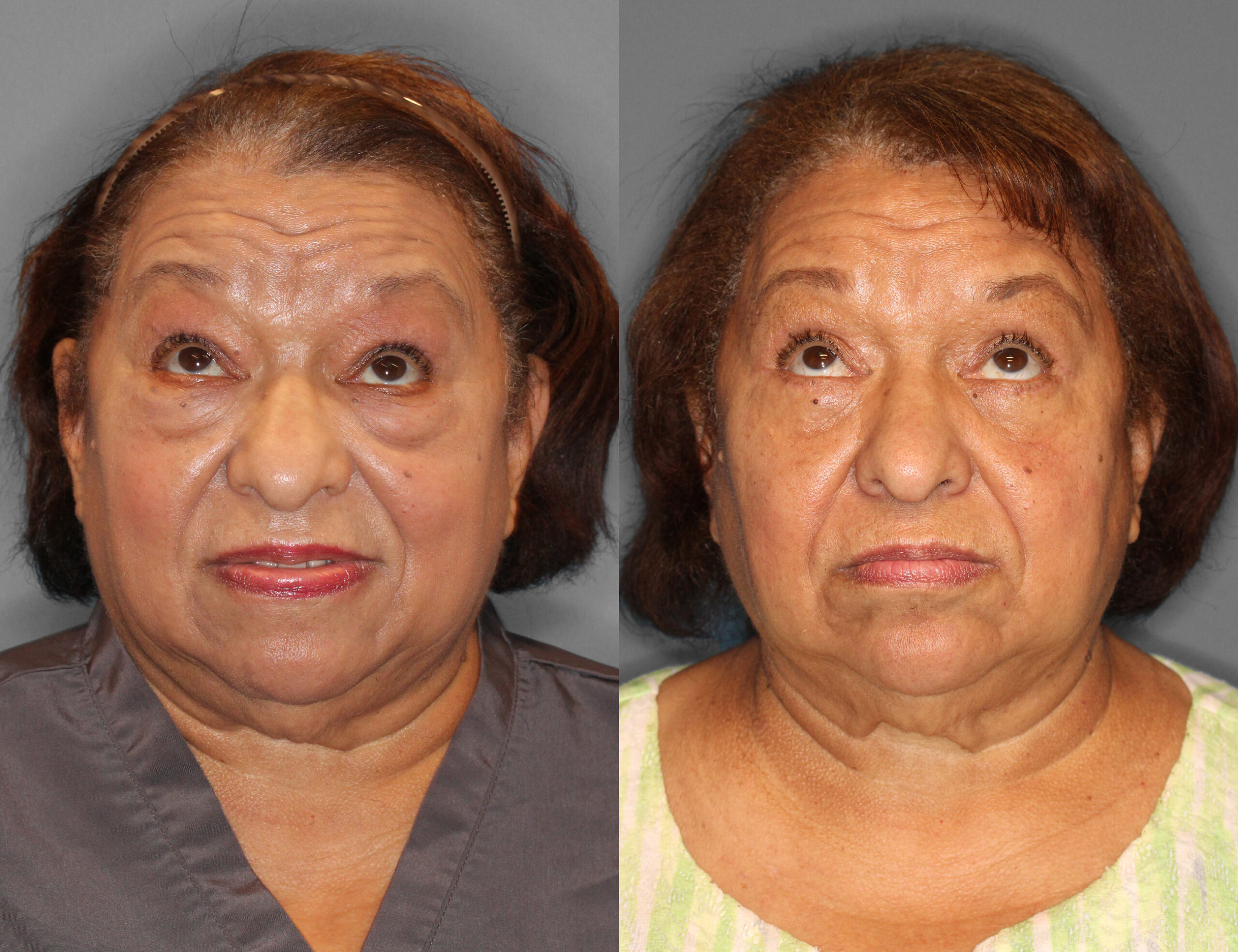 A esta paciente se le realizó Levantamiento de párpados superior e inferior.