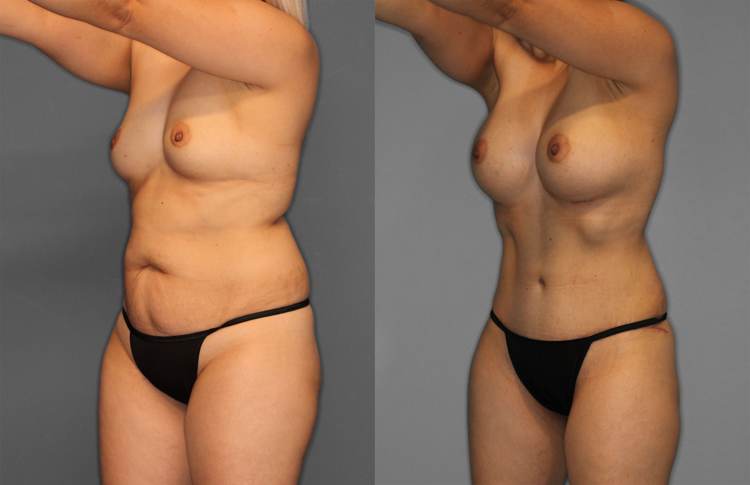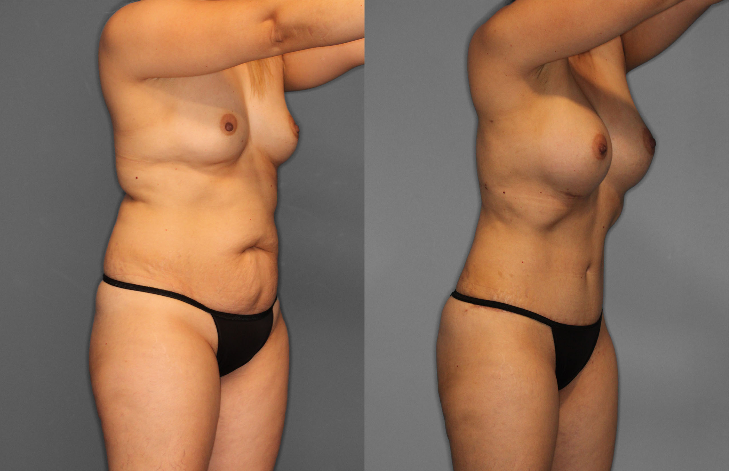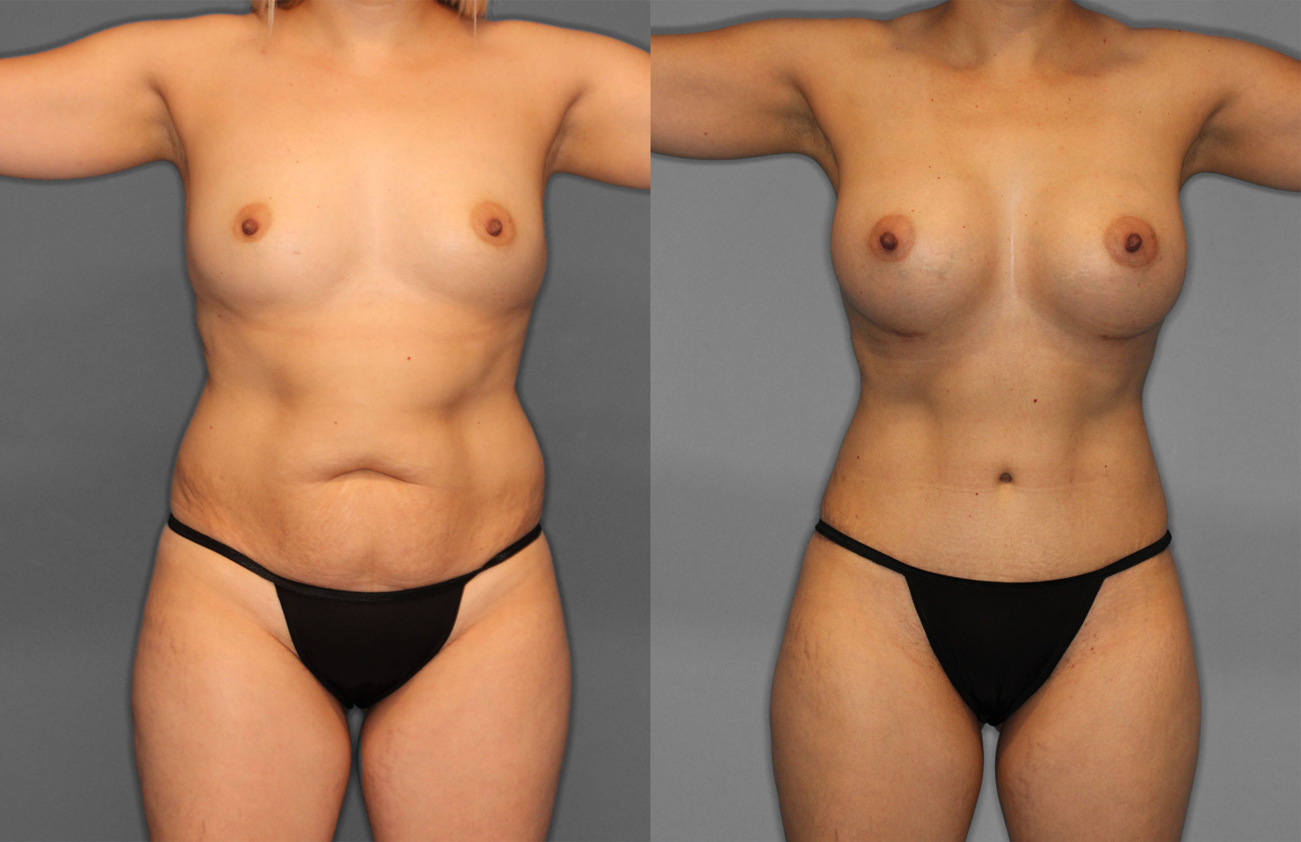 This patient had Tummy Tuck, Liposuction (Abdomen, Flanks, Back, Bra line, Axillas) & Bilateral Breast Augmentation performed.