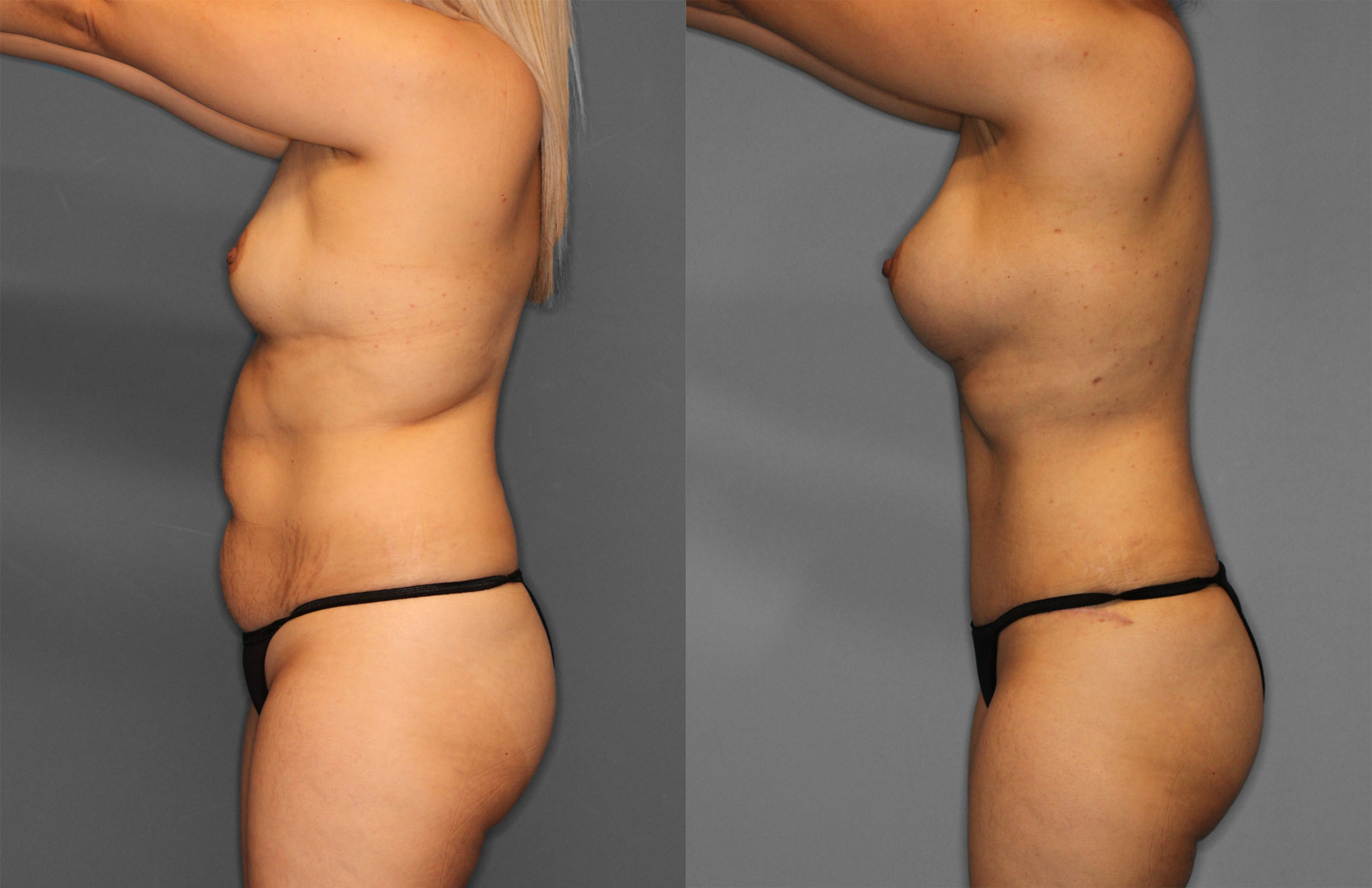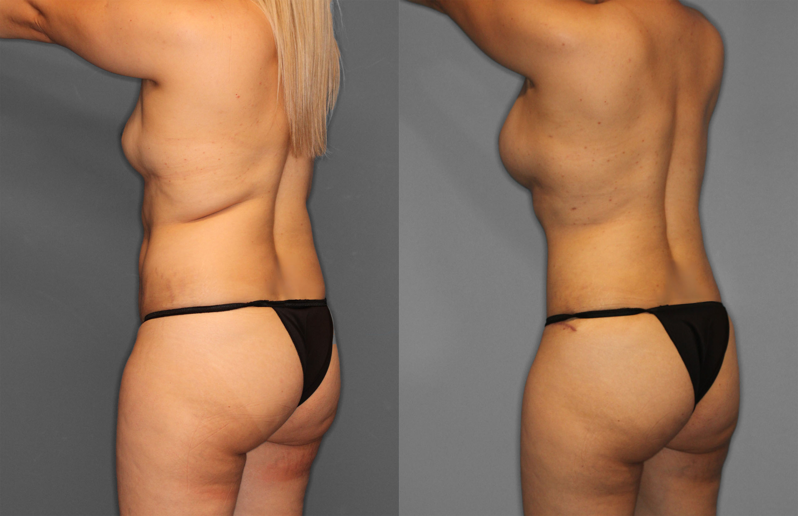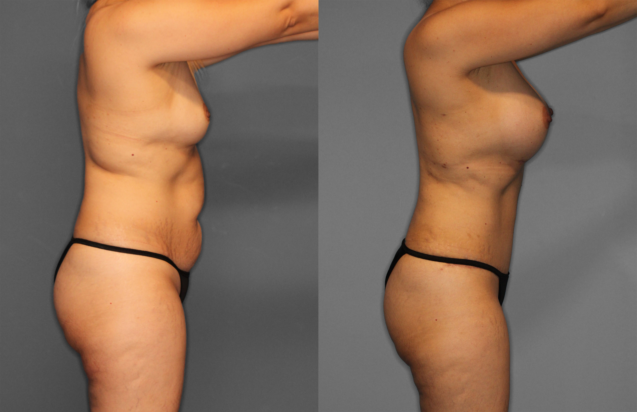 This patient had Tummy Tuck, Liposuction (Abdomen, Flanks, Back, Bra line, Axillas) & Bilateral Breast Augmentation performed.