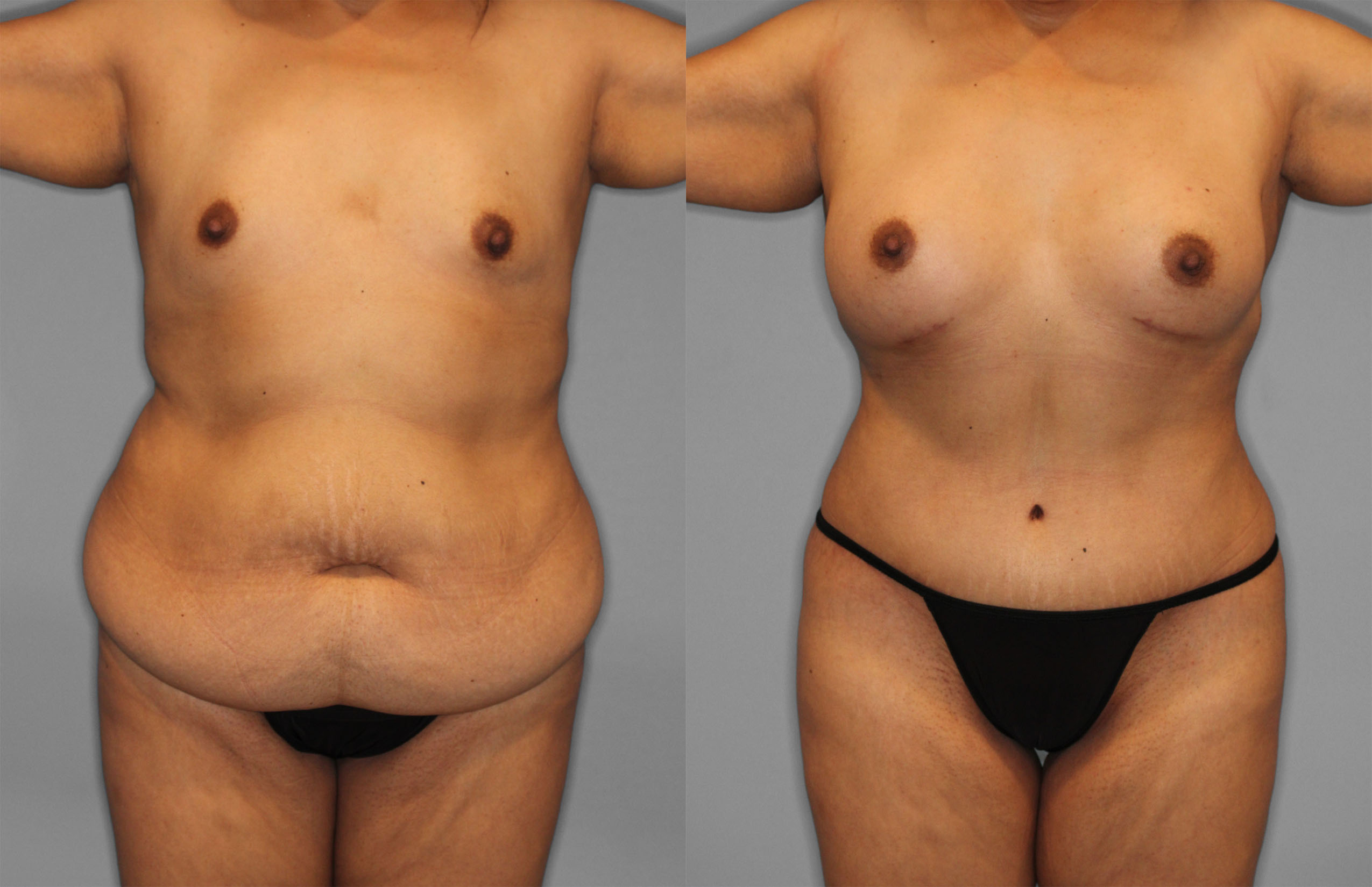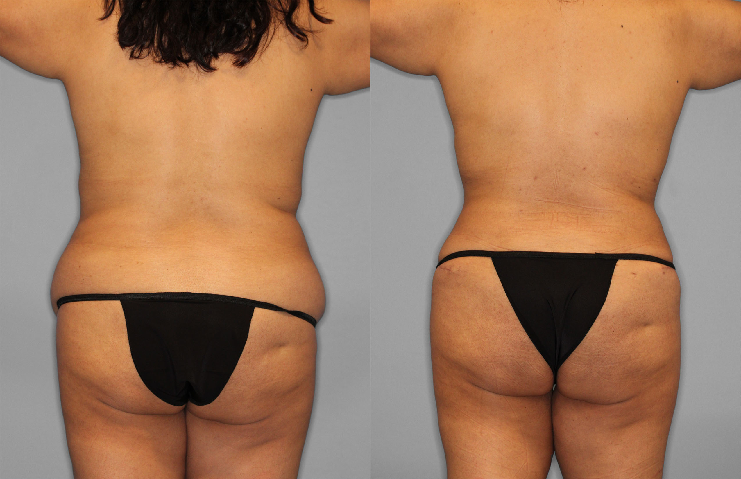 This patient had Tummy Tuck, Liposuction (Flanks, Back, Bra line), Breast Augmentation & Ventral Hernia Repair performed.